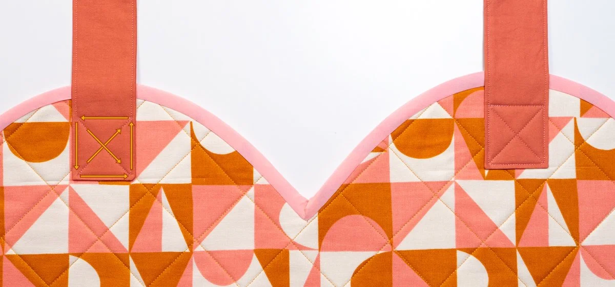 Stitch a boxed X using the ⅛” edge seam and the marked lines you previously created. You’ll end up sewing over one edge a second time, which is totally ok - I like to make sure it’s the top edge, so it’s extra sturdy!