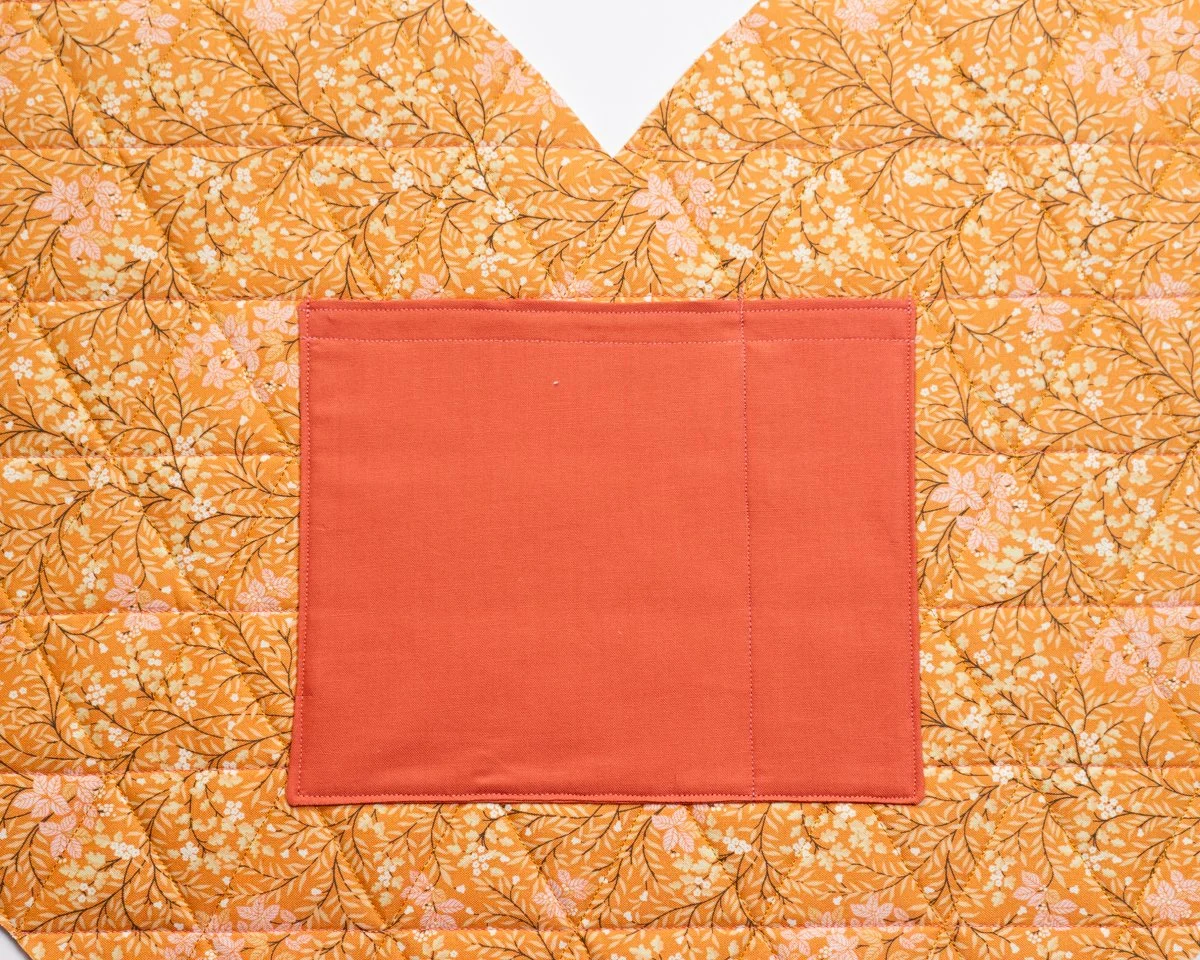 Sew around the sides and bottom of the pocket panel, avoiding the top, using a ⅛” seam allowance. Backtrack at the start and end of sewing to ensure your pocket stays put as you use it.