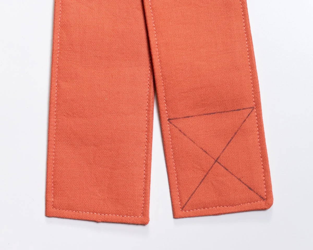A fully tacked down pocket with a short panel on the right for my pens!