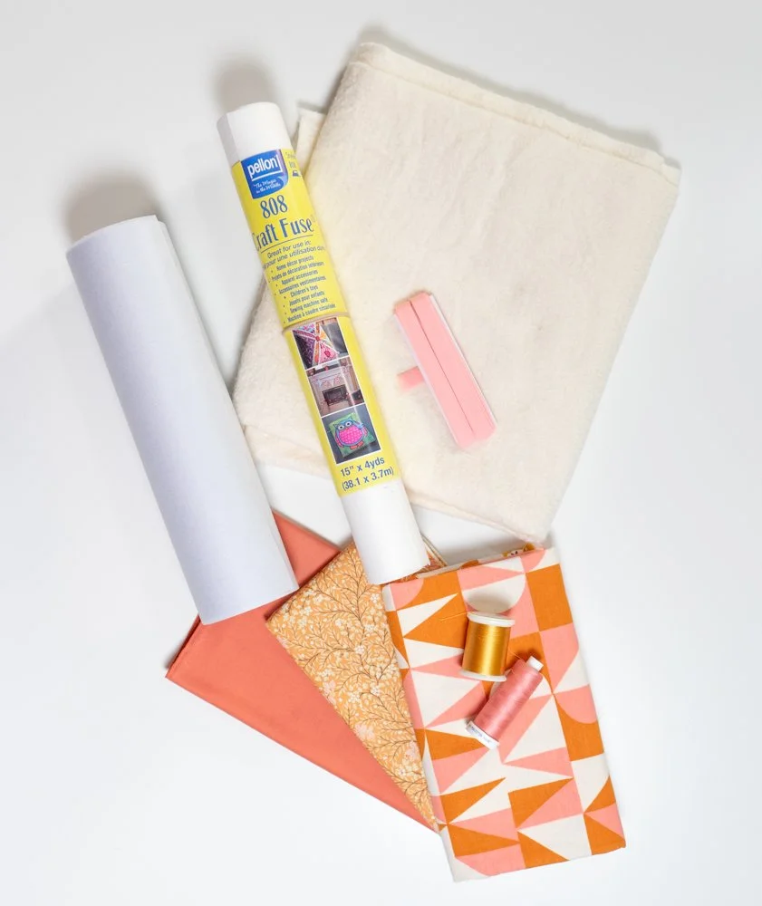 I used longarm scraps that I fused together with Heat Press Batting Together - it’s my favorite method for bag projects! Since the Decor Bond interfacing will keep the bag stiff and you’ll be quilting the heart panels, the batting can be a bit scrappy.