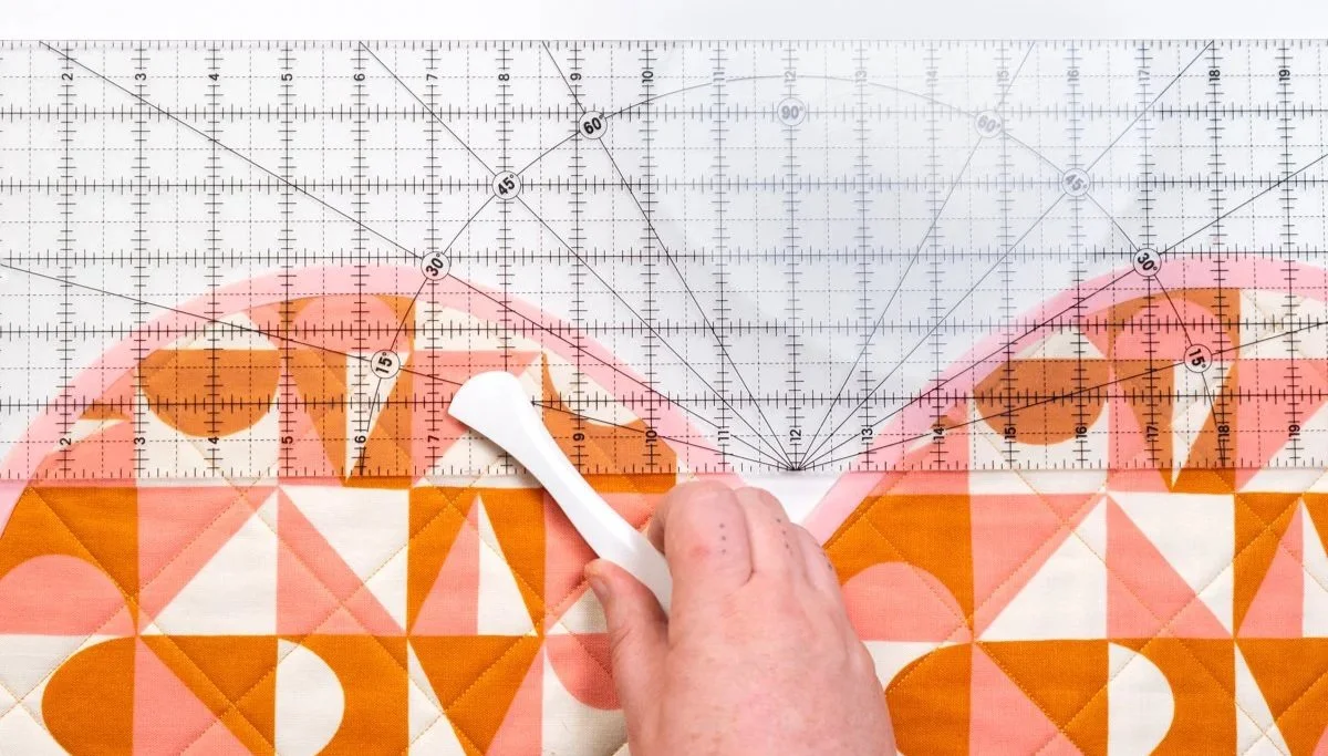 I love the Point 2 Point Turner from Clover for visible marks that you won’t need to erase later. I choose a design, then I use the large, creased edge of the turner to press down my lines. Take a look at the photos below to see how it works:
